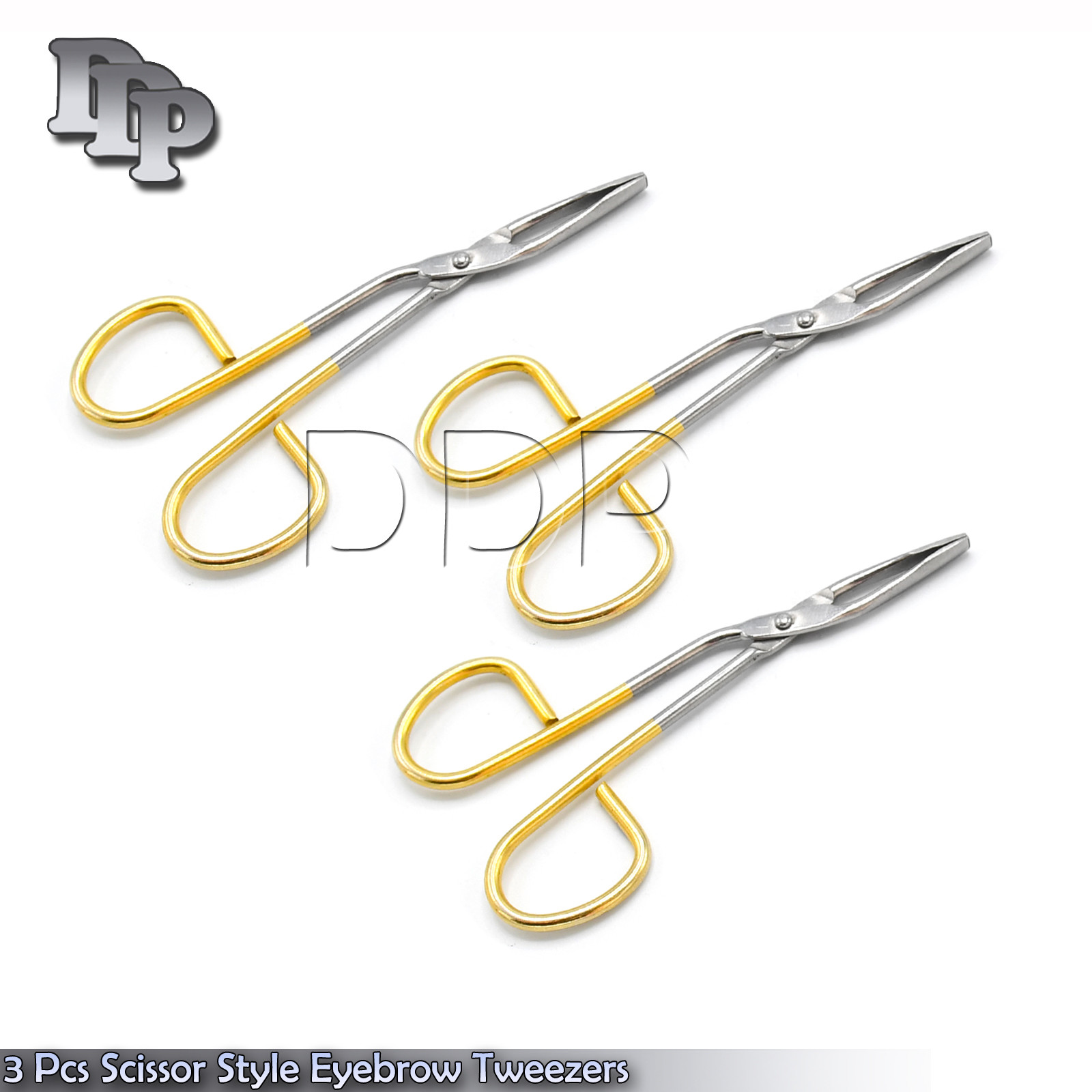 3 Pcs Scissor Style Eyebrow Tweezers 3.5'' Hair Removal Gold platted