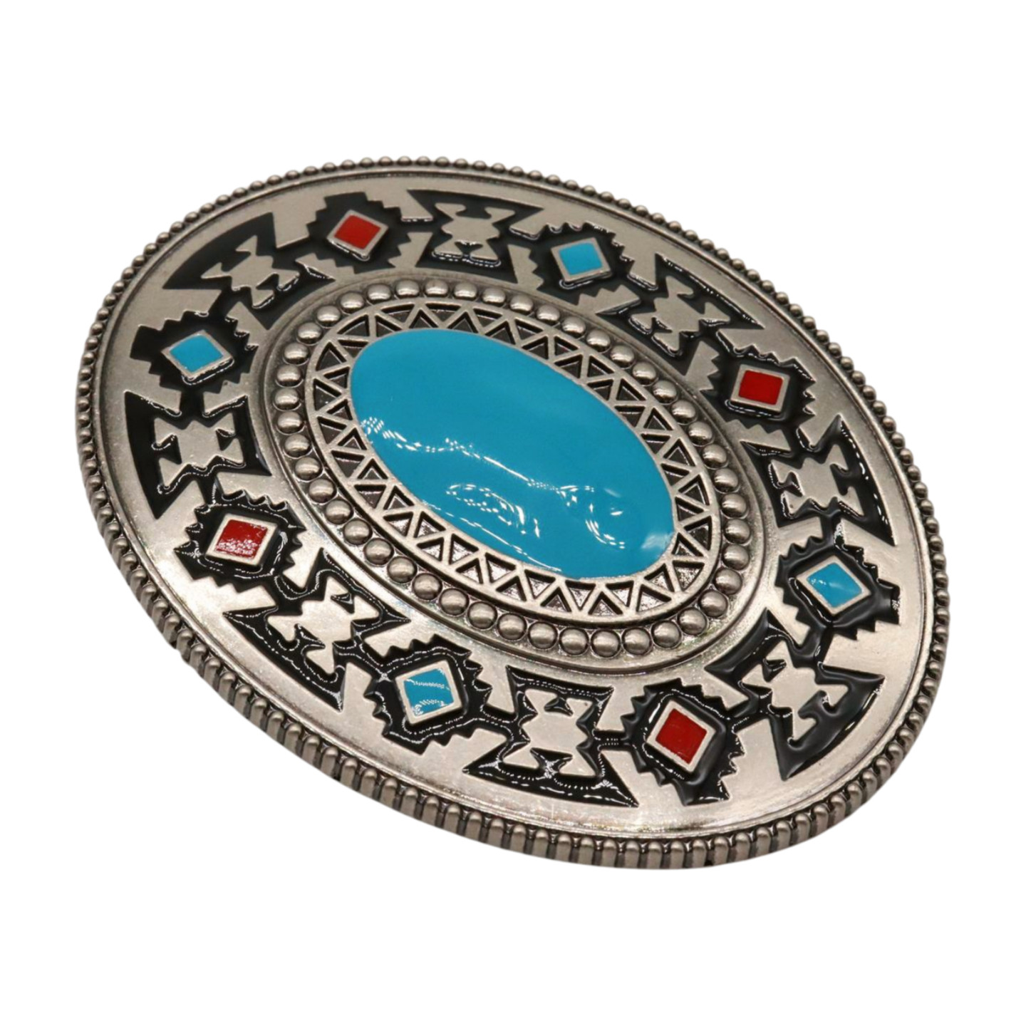 Men Silver Metal Buckle Native Ethnic Big Oval Turquoise Blue Western Accessory