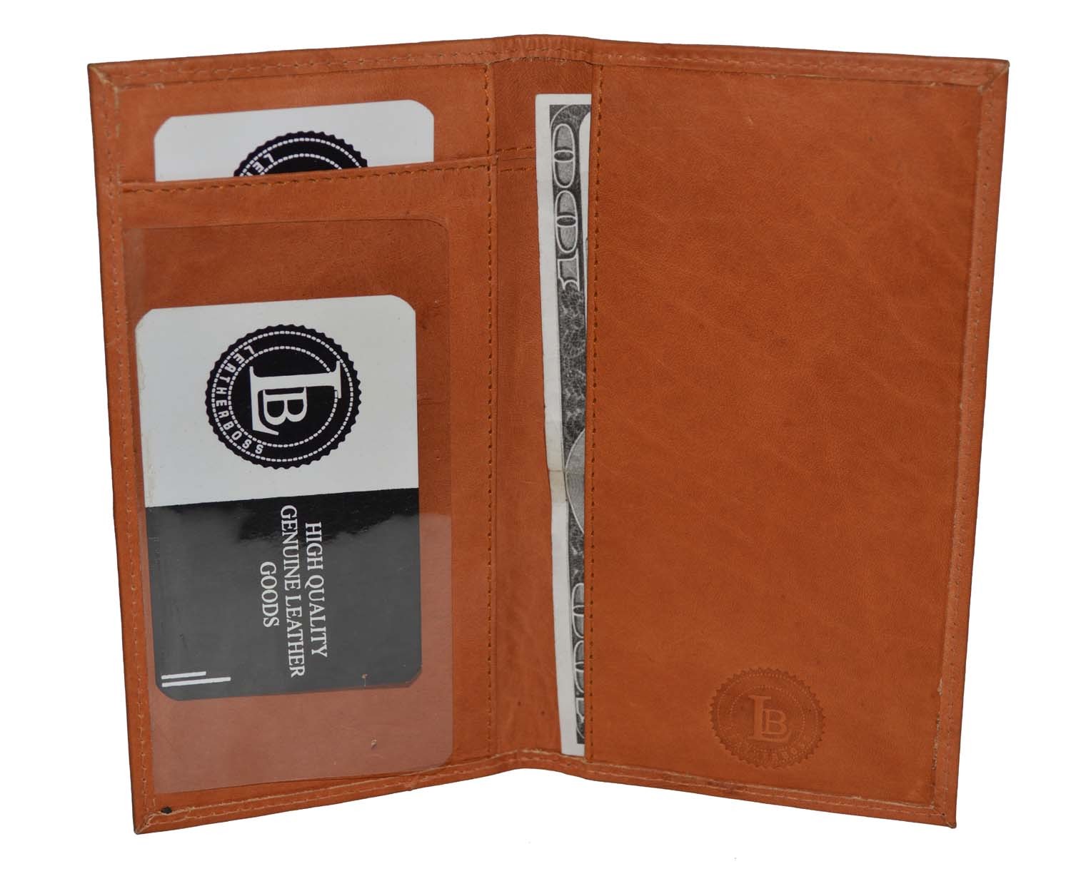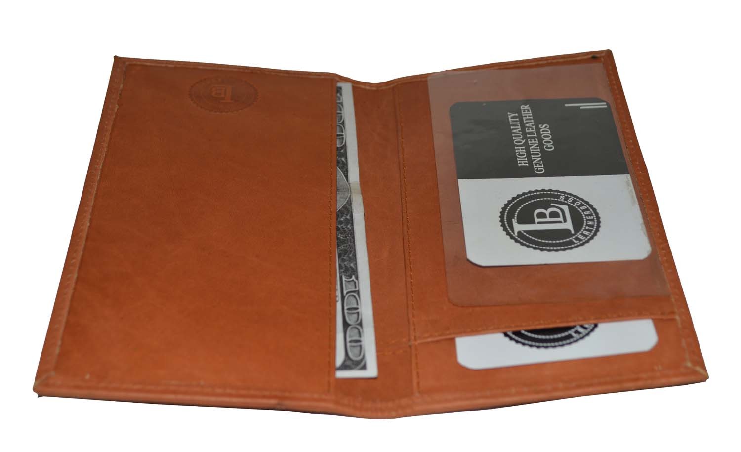 как выглядит Leatherboss Genuine Leather Checkbook Cover Super Slim Plain Men Women Cowhide фото