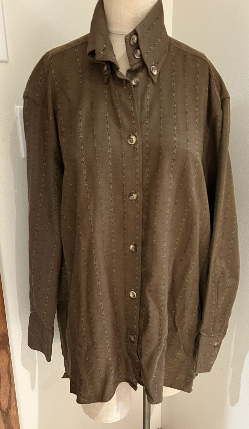 Mariano Rubinacci for Mark Shale Women's LS Brown Gold Cotton Shirt sz M Vintage