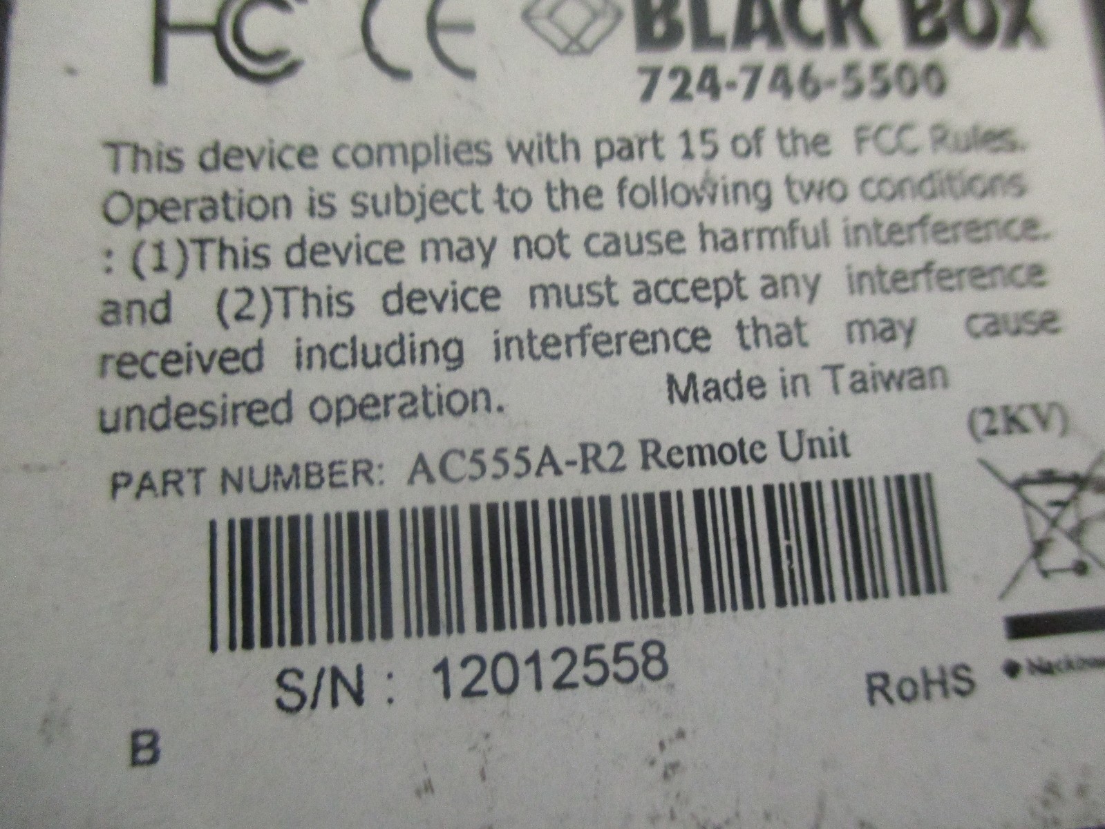 Black Box Model: AC555A-R2 VGA Extender - Remote. No AC Adapter