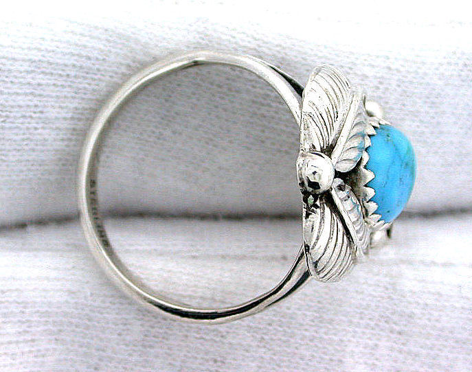Vintage Handmade Navajo Southwest Pure Sterling Silver Turquoise Cabochon Ring