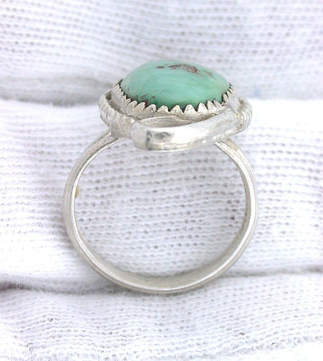 Vintage Handmade Navajo Southwest Pure Sterling Silver Turquoise Cabochon Ring