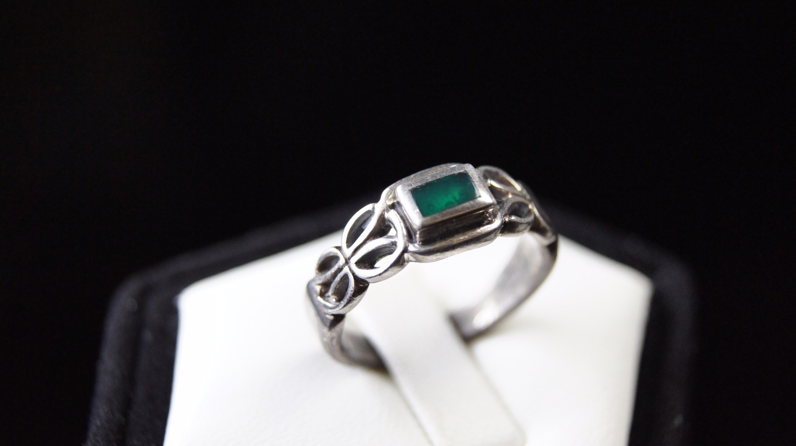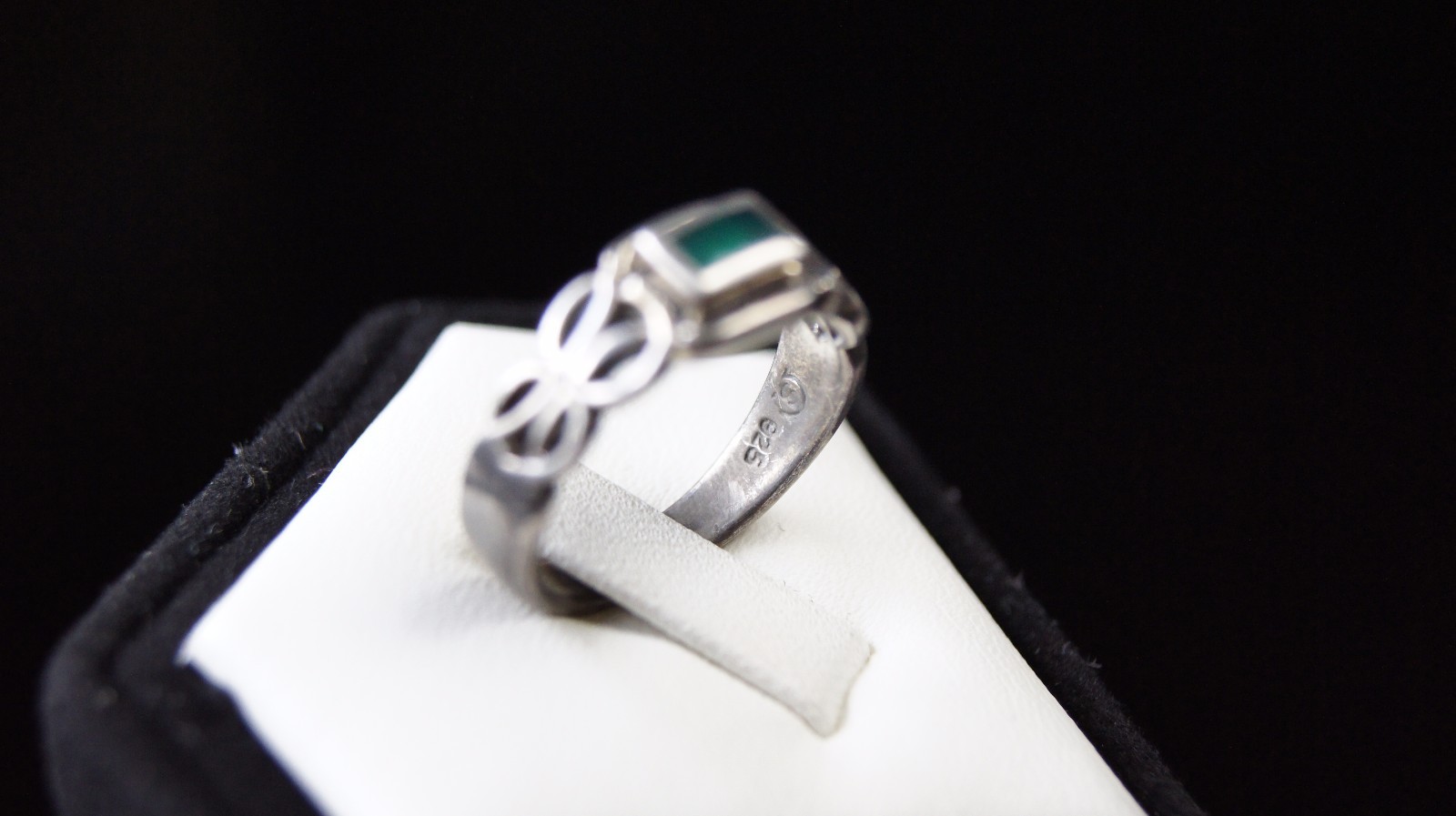 как выглядит Sterling Silver 925 Handcrafted Dark Green Stone Ring Size 7 фото
