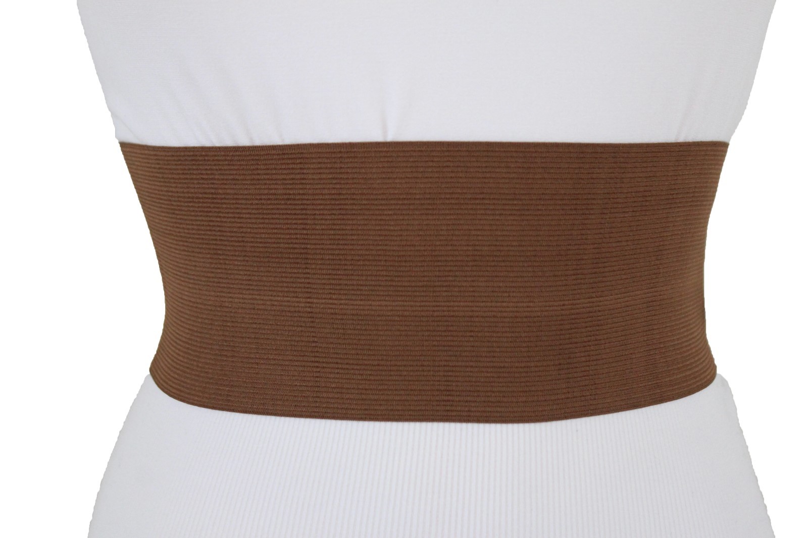 Women Hip Waist Silver Metal Hooks Buckle Wide Brown Corset Belt Plus L XL XXL