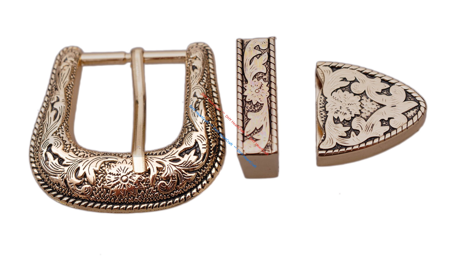 Western Cowboy Gold Floral Engraved Ranger Belt Buckle Set Fits 1-1/8 Strap