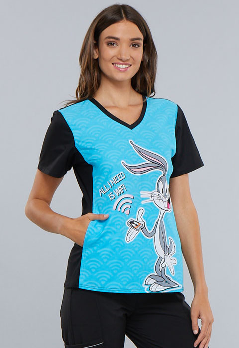 Bugs Bunny Cherokee Scrubs Tooniforms Knit Panel V Neck Top TF670 LTWF