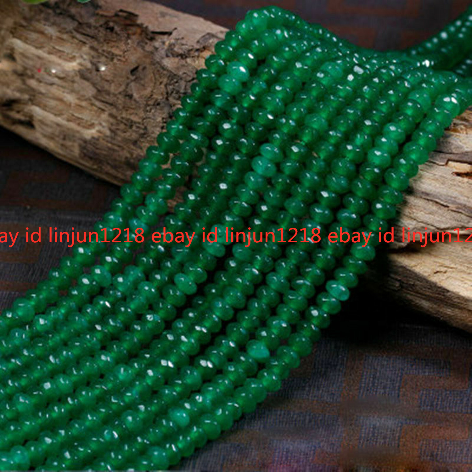 2x4mm Natural Green Jade Faceted Rondelle Gemstone Loose Beads 15