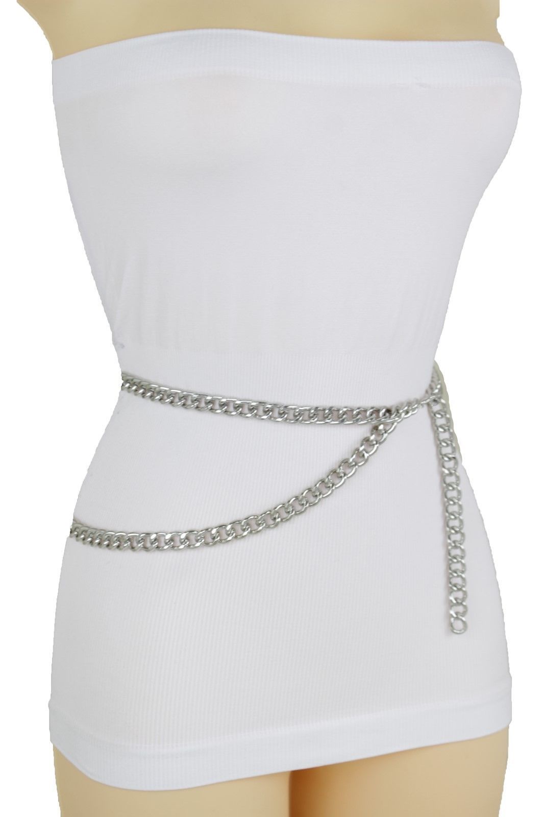 Women Fashion Dressy Belt Silver Thick Metal Chunky Chain Link Plus Size XL XXL
