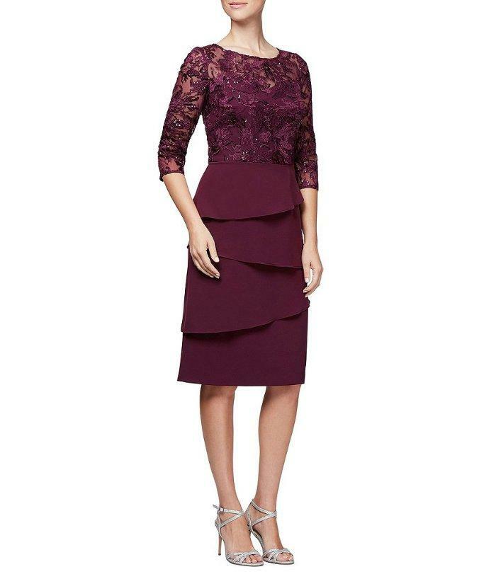 как выглядит ALEX EVENINGS 8 Sequin Lace Bodice Asymmetrical Tiered Skirt Dress NWT 209 фото