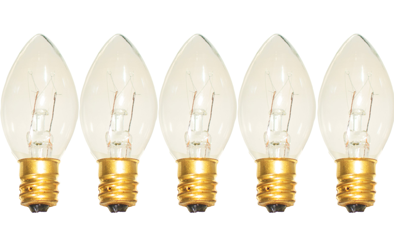 как выглядит C-9 CLEAR STEADY LIGHT BULBS - BRAND NEW 1 BOX OF 25 C9 E17 INCANDESCENT фото