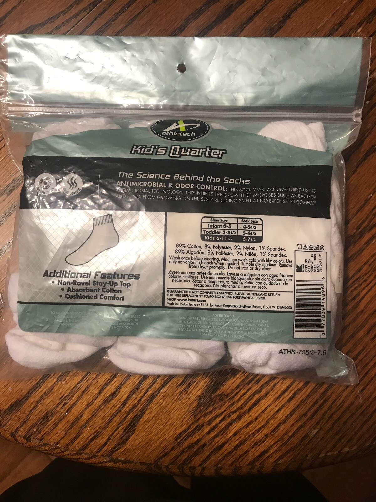 Athletech Kids Quarter Size 6-11 1/2 Socks Pkg. of 10