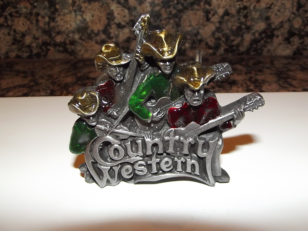 Vintage 1980s Bergamot Pewter Belt Buckle COUNTRY WESTERN Music Cowboy Band