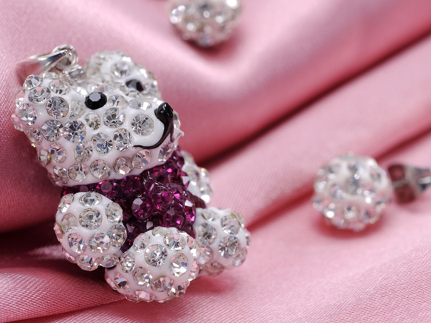 как выглядит Cute Clear Violet Rhines Happy Sitting Down Teddy Bear Pedant Earring Set фото