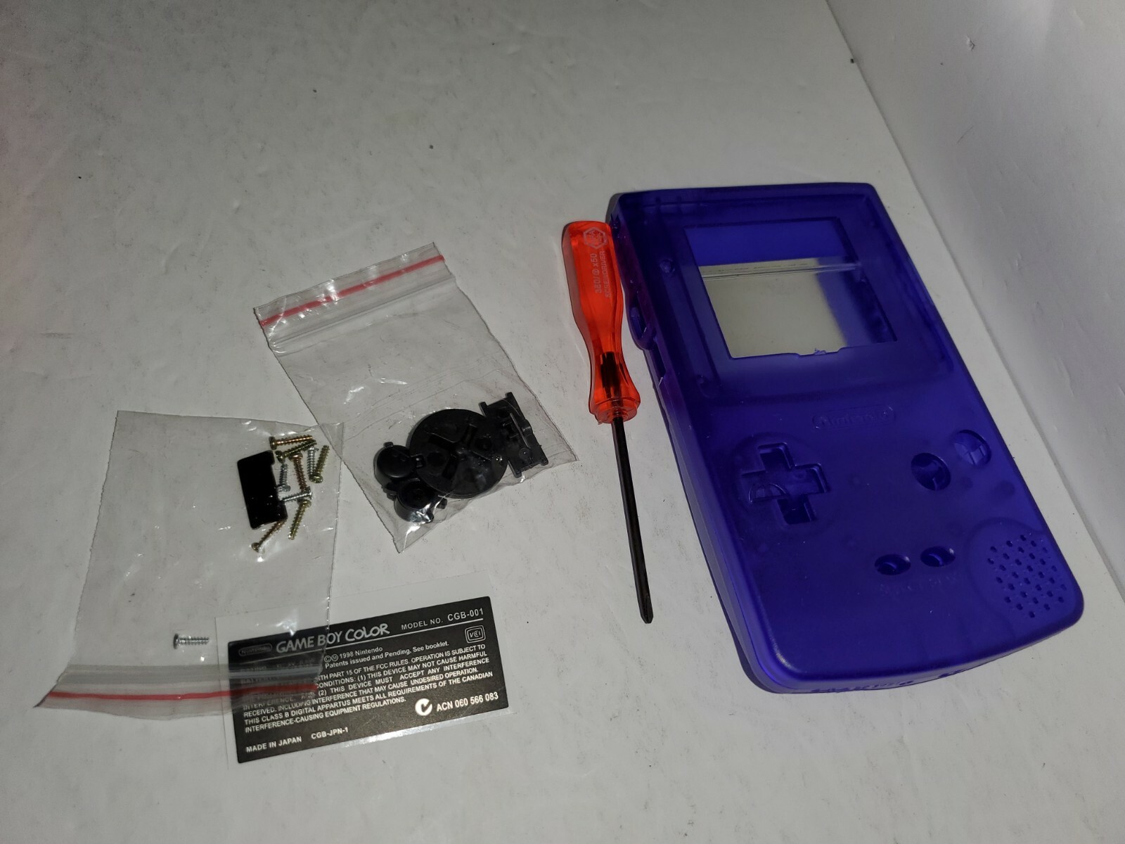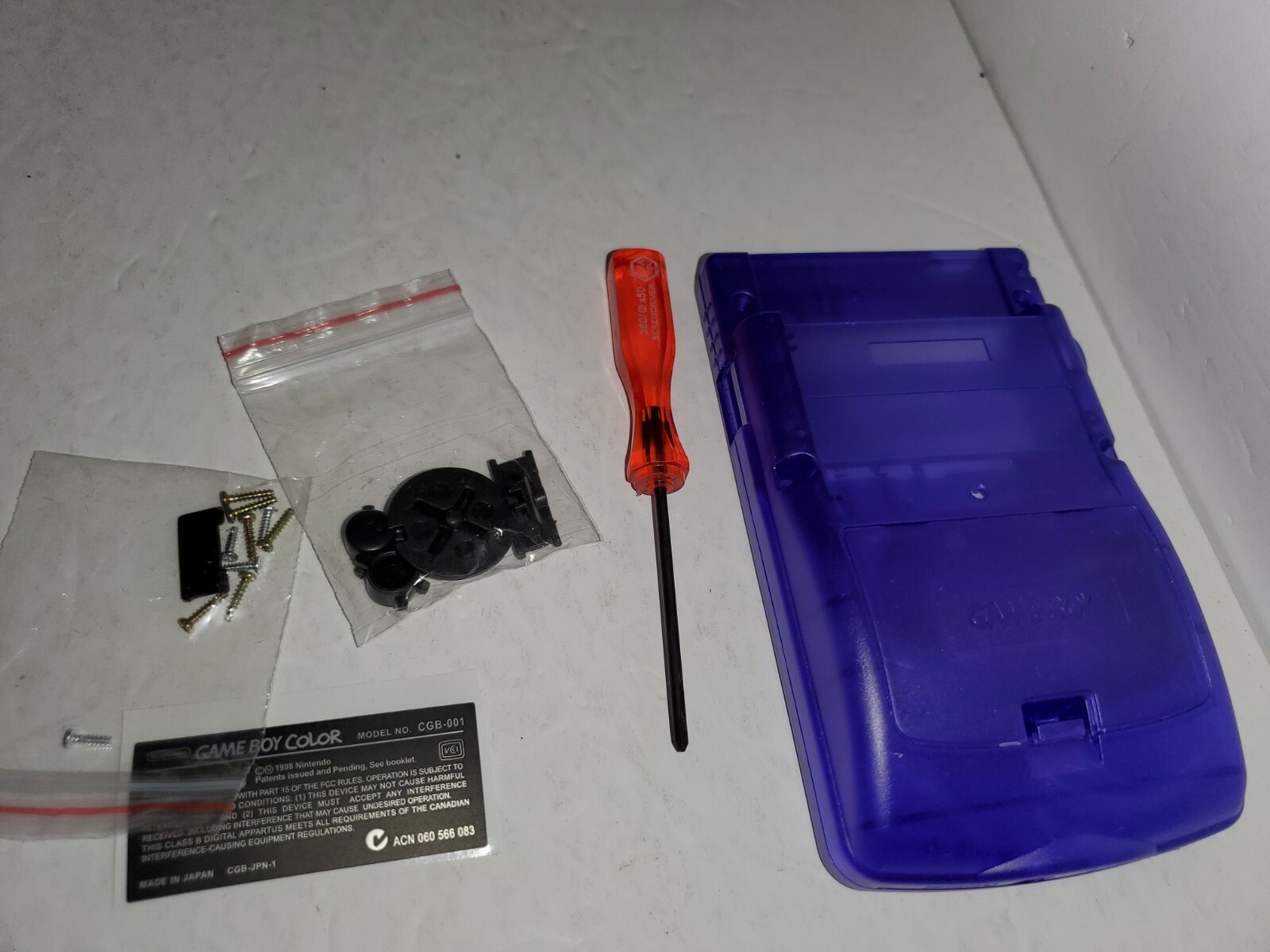 Clear Purple Full Housing Case Shell for Gameboy Color Buttons Glass Screen T22