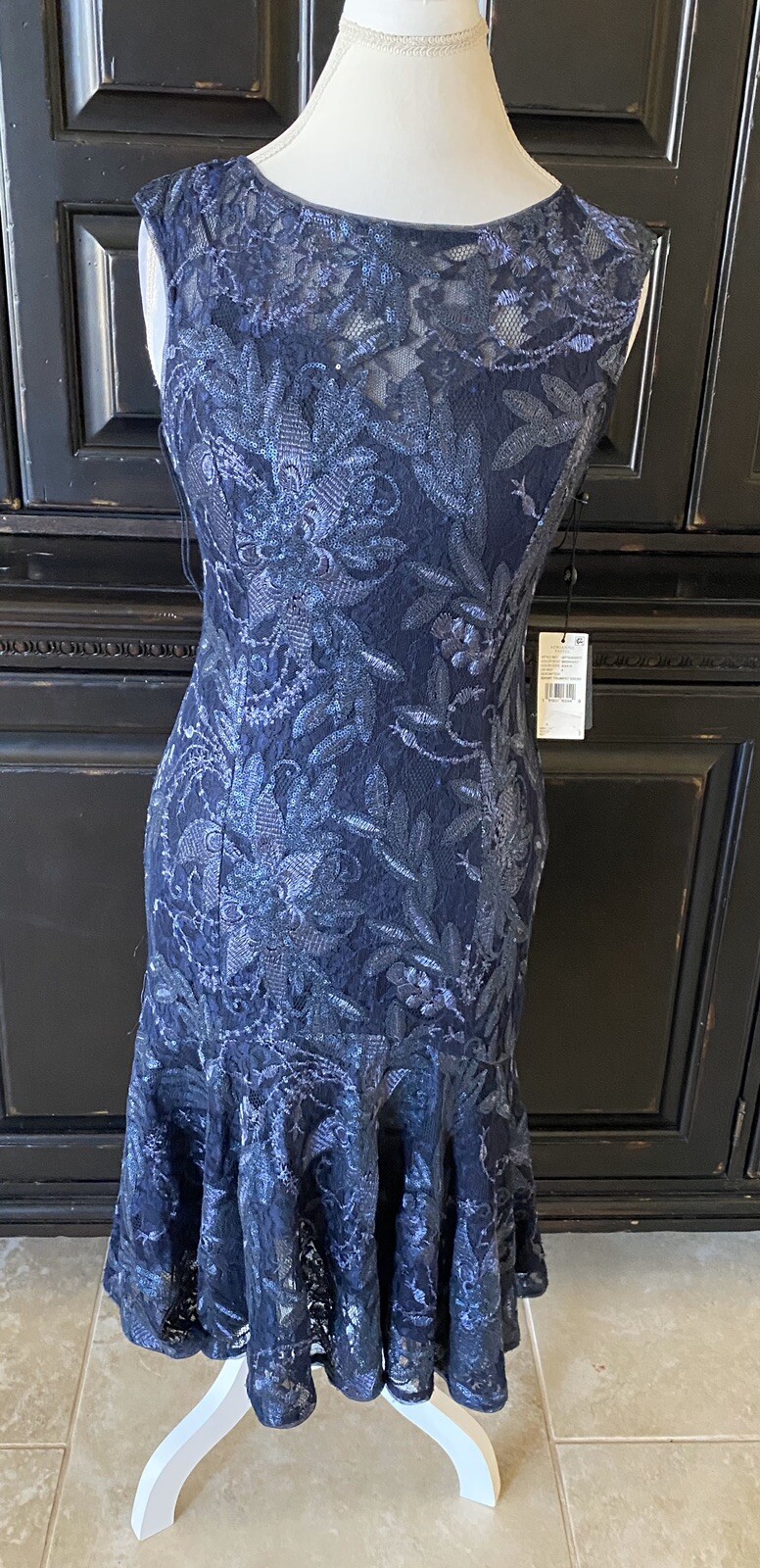 как выглядит ADRIANNA PAPELL 189 Sequin Gown Midnight Blue NWT WEDDING MOB PROM GALA Size 10 фото