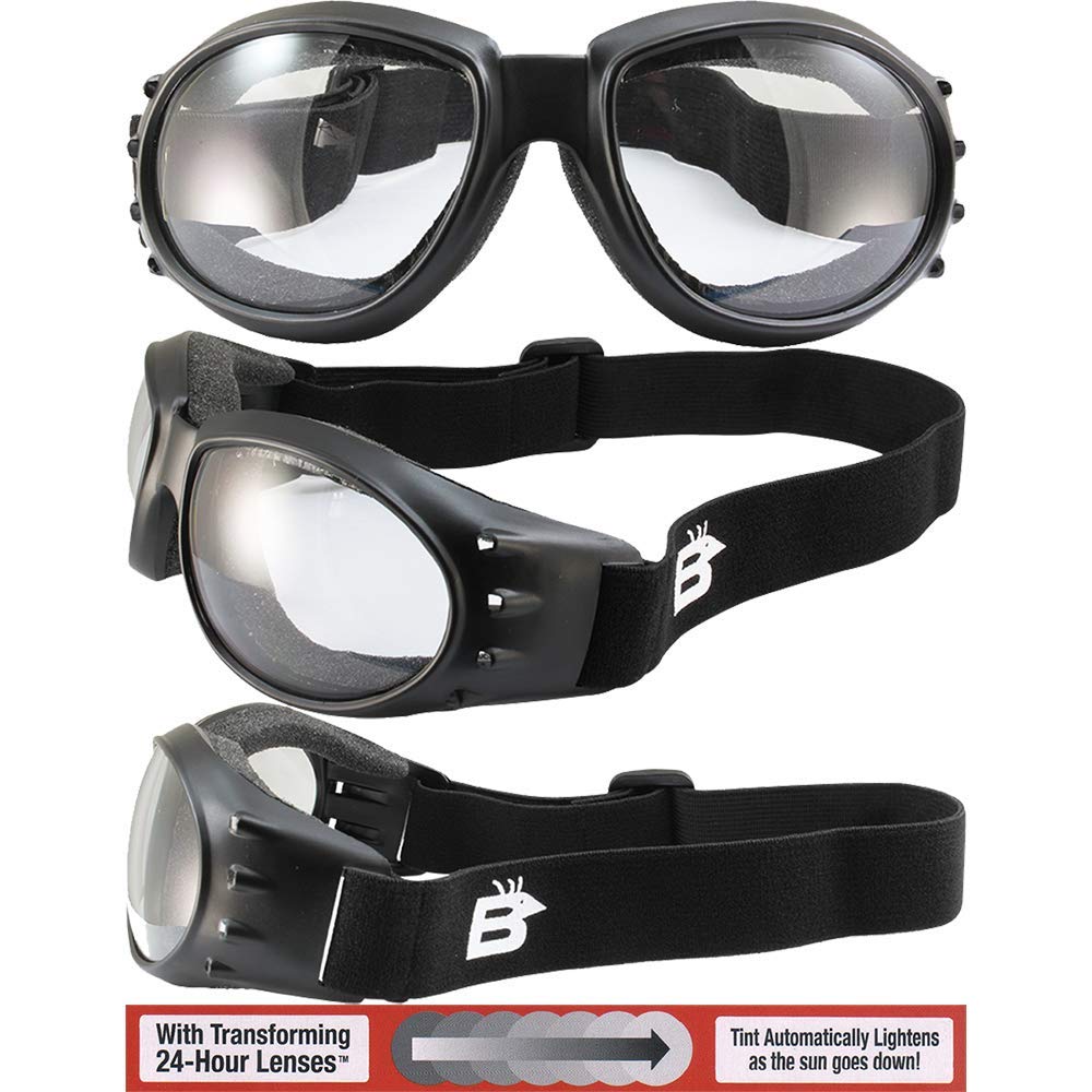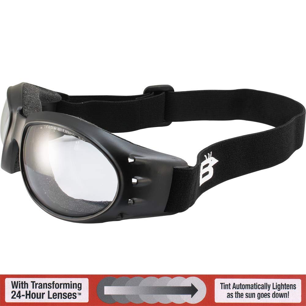 Birdz Eagle Matte Black Padded Riding Goggle Photochromic Clear to Smoke Lens