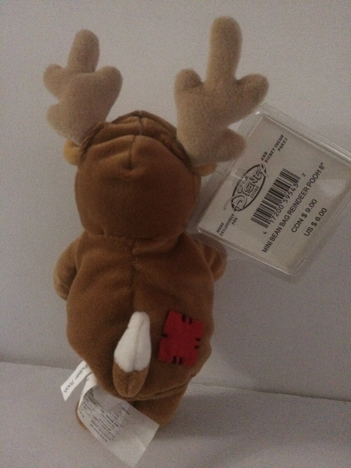 • The Disney Store 8 Inch Winnie The Pooh Reindeer Costume Beanbag Plush NWT