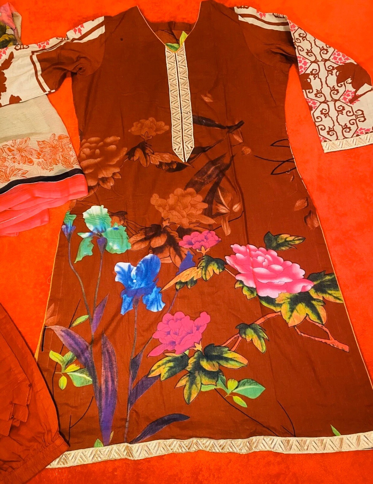 как выглядит BRAND NEW 3 Piece Shalwar Kameez Pakistani With Chiffon Dupatta, Large Set Suit фото