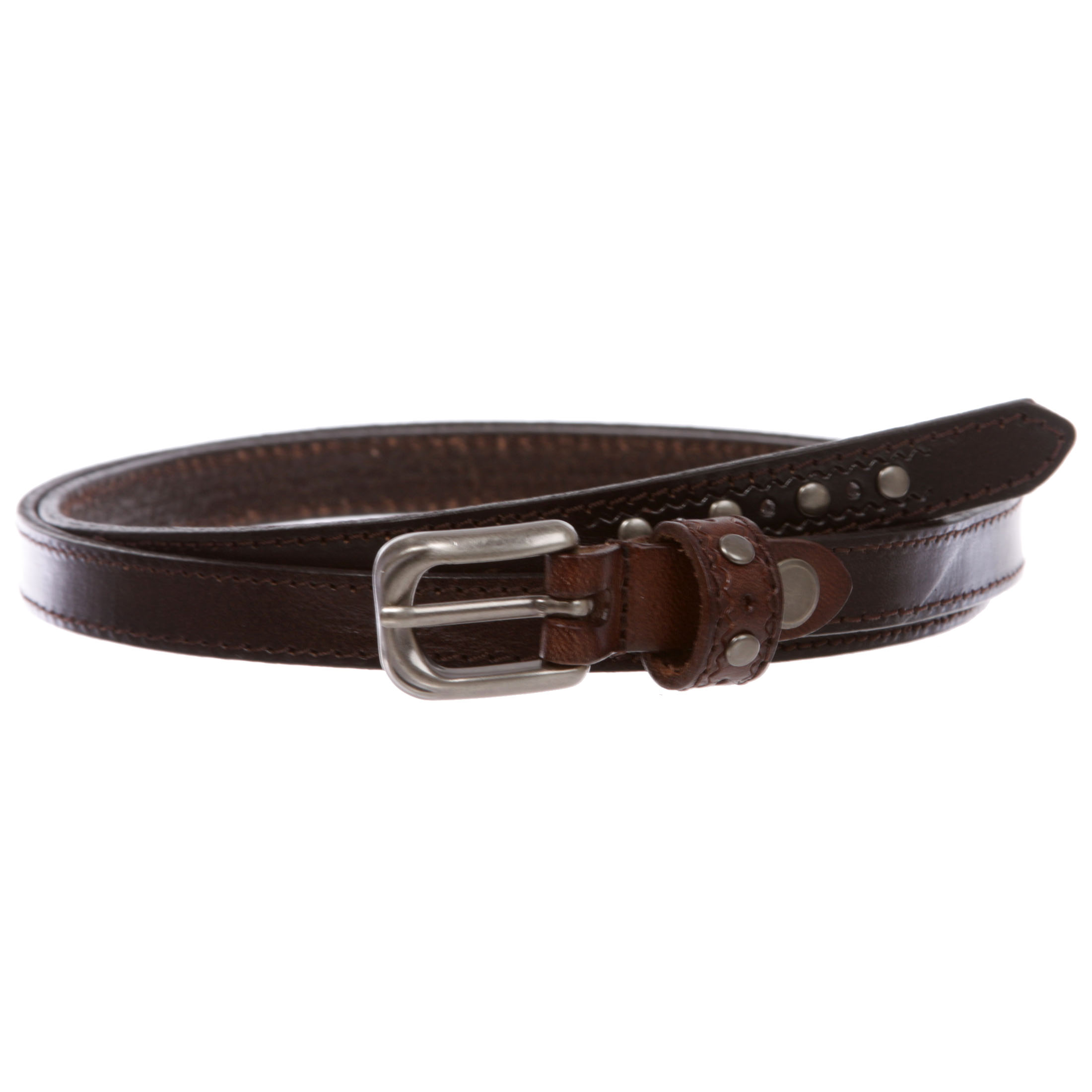 как выглядит Womens 1/2" 13 mm Skinny Edge Stitch Casual / Dress Leather Belt фото