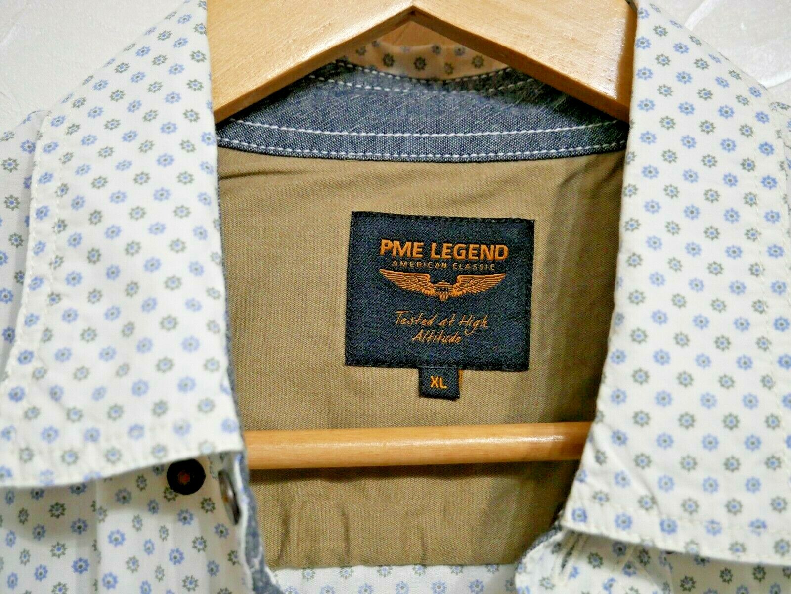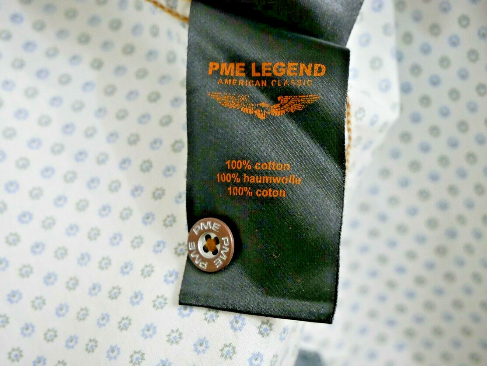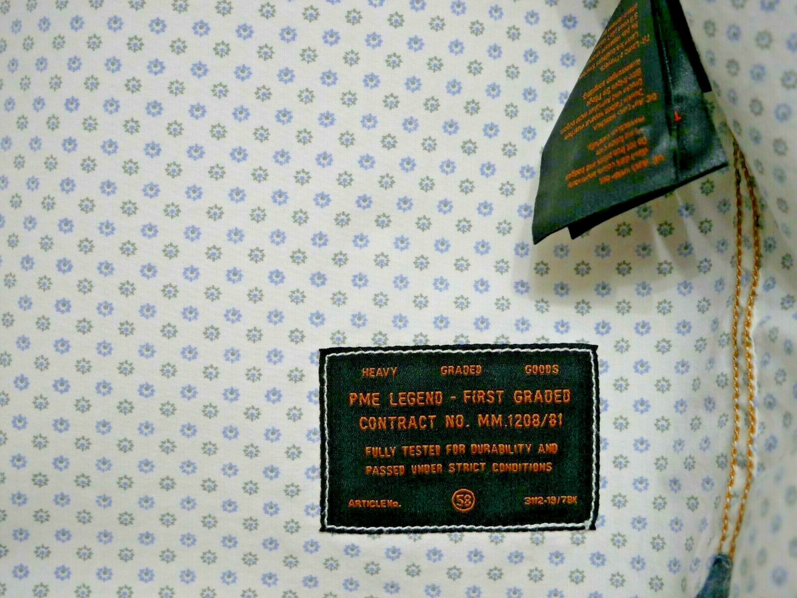 PME Legend American Classic Men Casual White wiht Blue Flowers Shirt Cotton SzXL