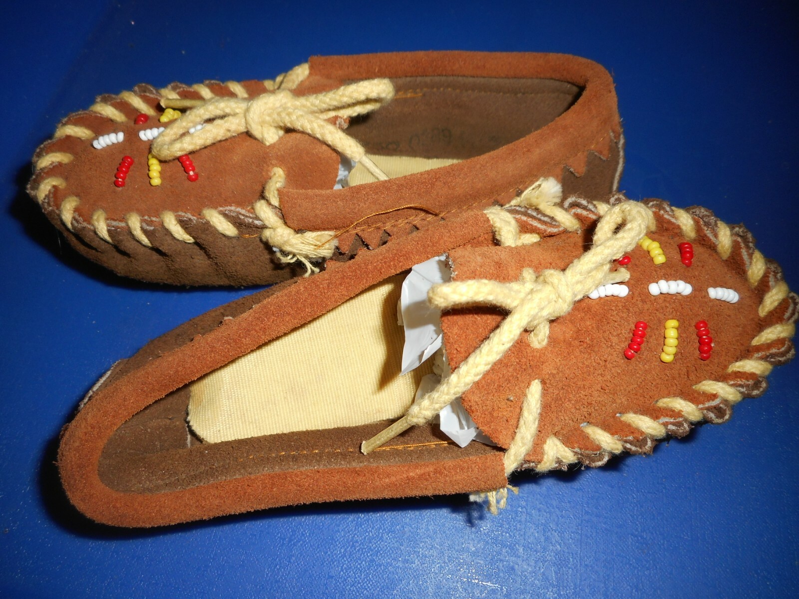 Moccasin suede leather slipper child boys girls size M loafer With Color BEADS