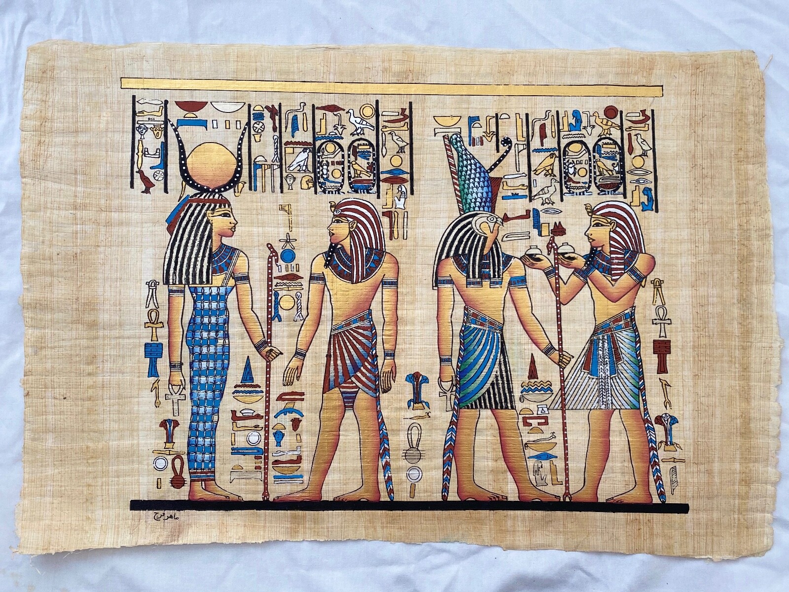 Egyptian Papyrus Paper Hand Painting Isis Horus King Tut Design 25X17