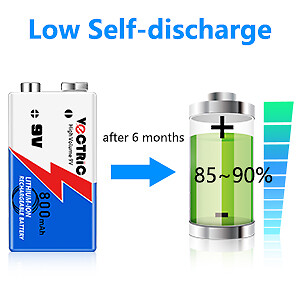 9V Rechargeable Li-ion Battery 800mAh VECTRIC 3 Packs with Smart Charger Lithium
