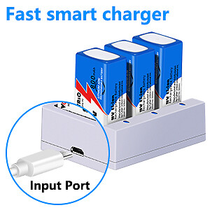 как выглядит 9V Rechargeable Li-ion Battery 800mAh VECTRIC 3 Packs with Smart Charger Lithium фото