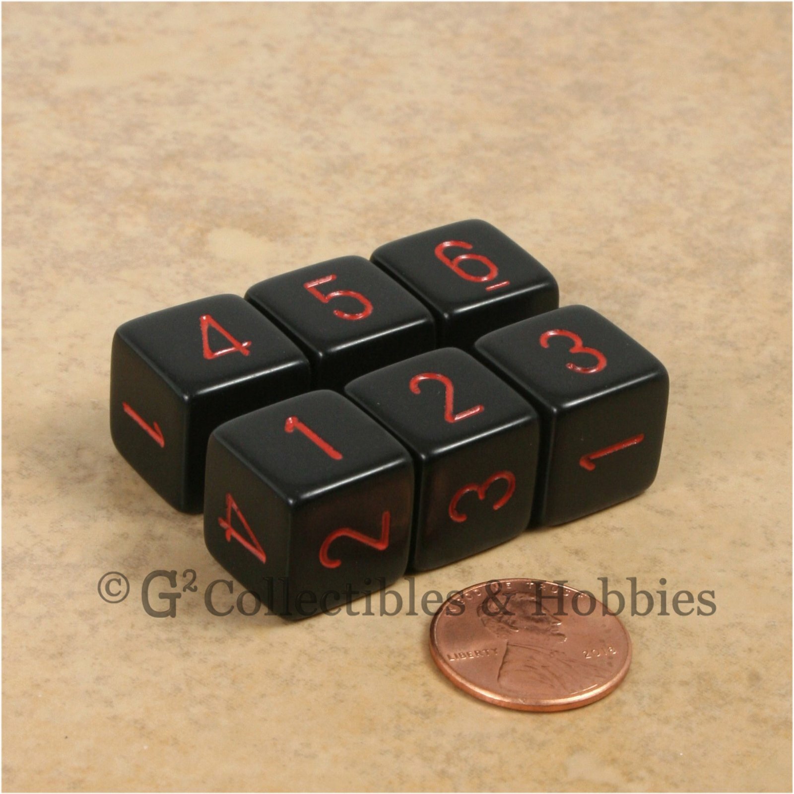 NEW Set of 6 Black with Red Numbers D6 Six Sided RPG D D Gaming Dice Chessex