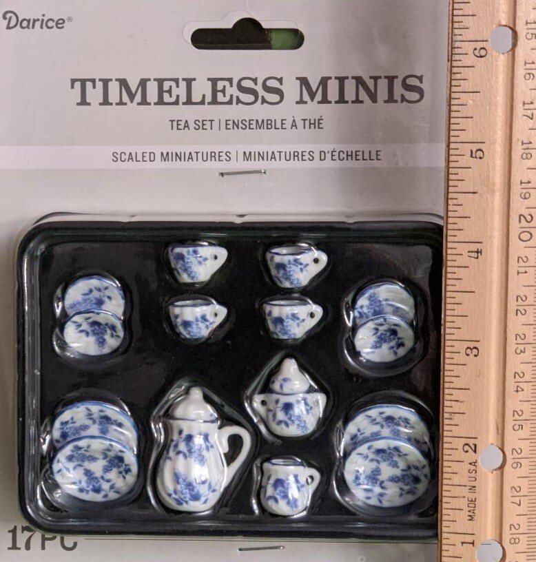Miniature Ceramic Tea Set 17 pieces Floral Design Fairy Garden Dollhouse NEW