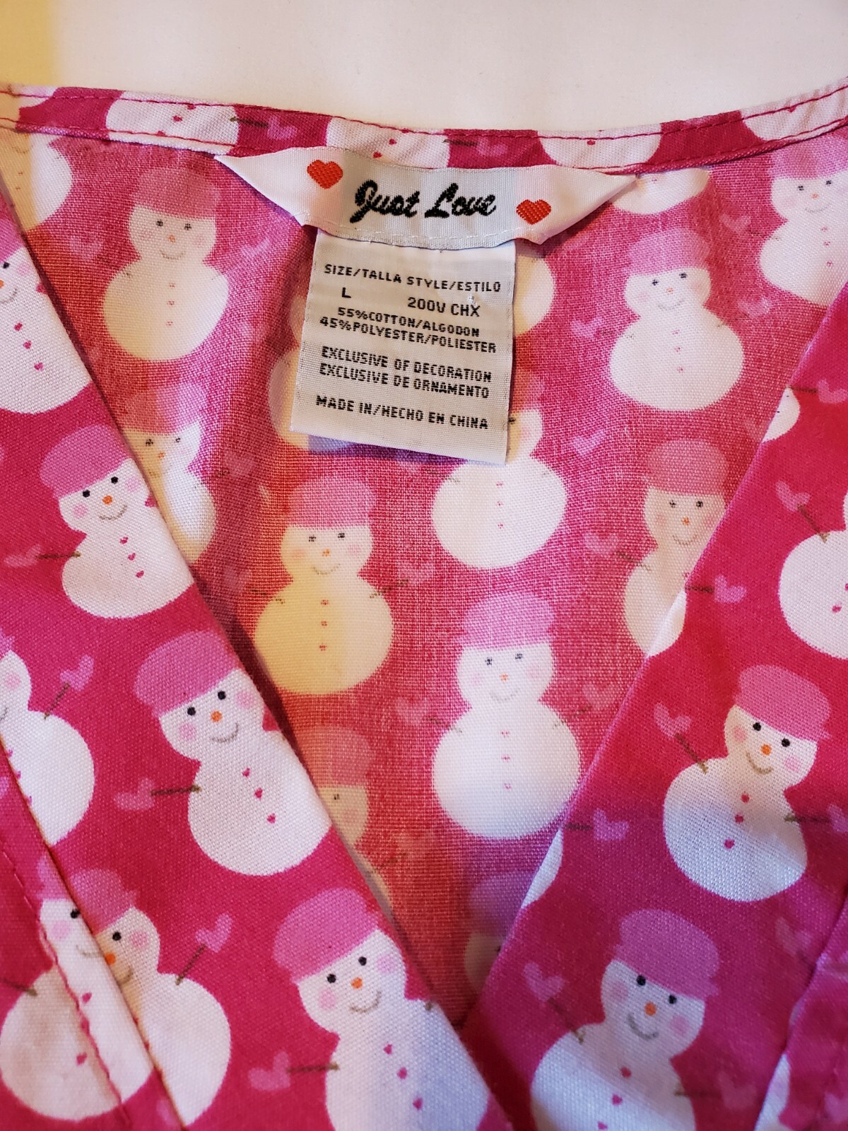 Just Love Scrub Top Women's Large Pink Snowman Winter Christmas