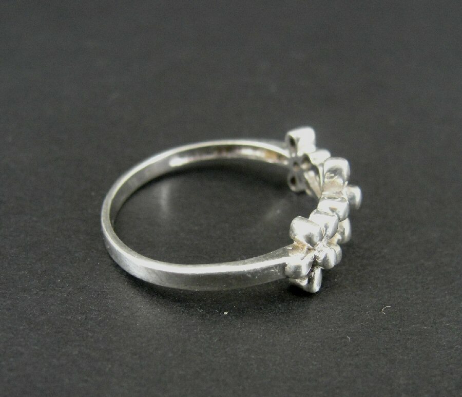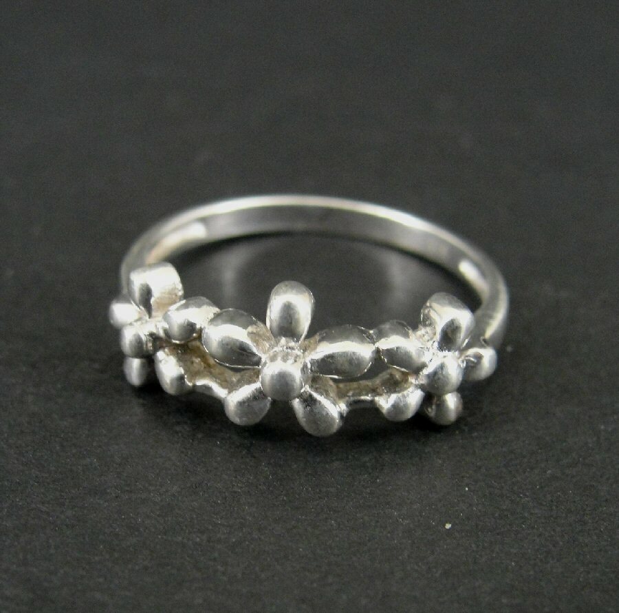 Ring Silver Daisy Three in a Row Flowers Band Sterling 925 Band Size 7 Ring