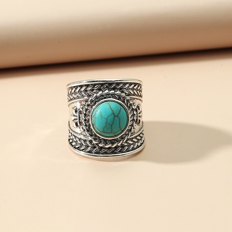 как выглядит Beautiful Retro Turquoise Wide Band Ring-adjustable size фото