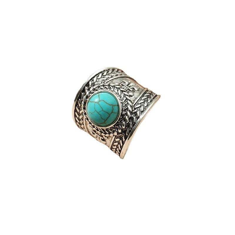 Beautiful Retro Turquoise Wide Band Ring-adjustable size