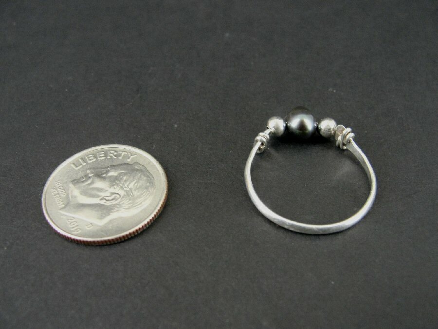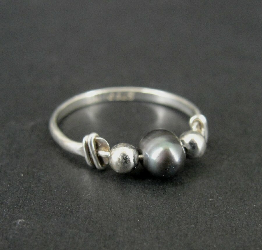 Ring Silver Black Pearl with Bead Accents Sterling 925 Size 6 Ring Band