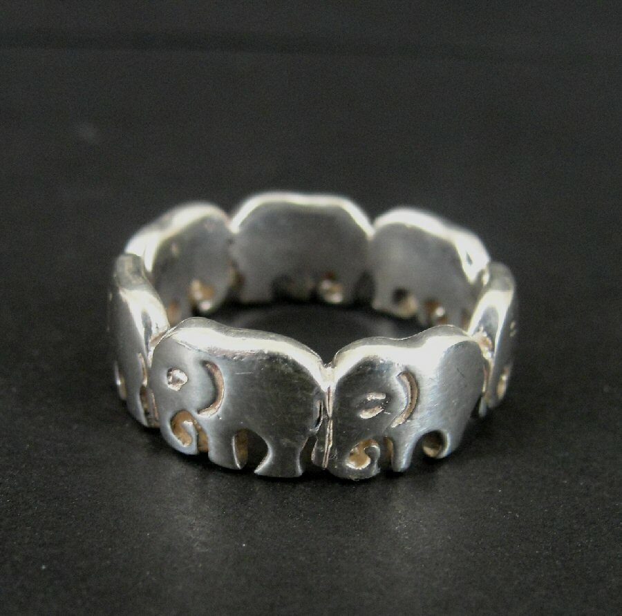 Ring Silver Elephants all around Band Sterling 925 Size 6 Ring Band