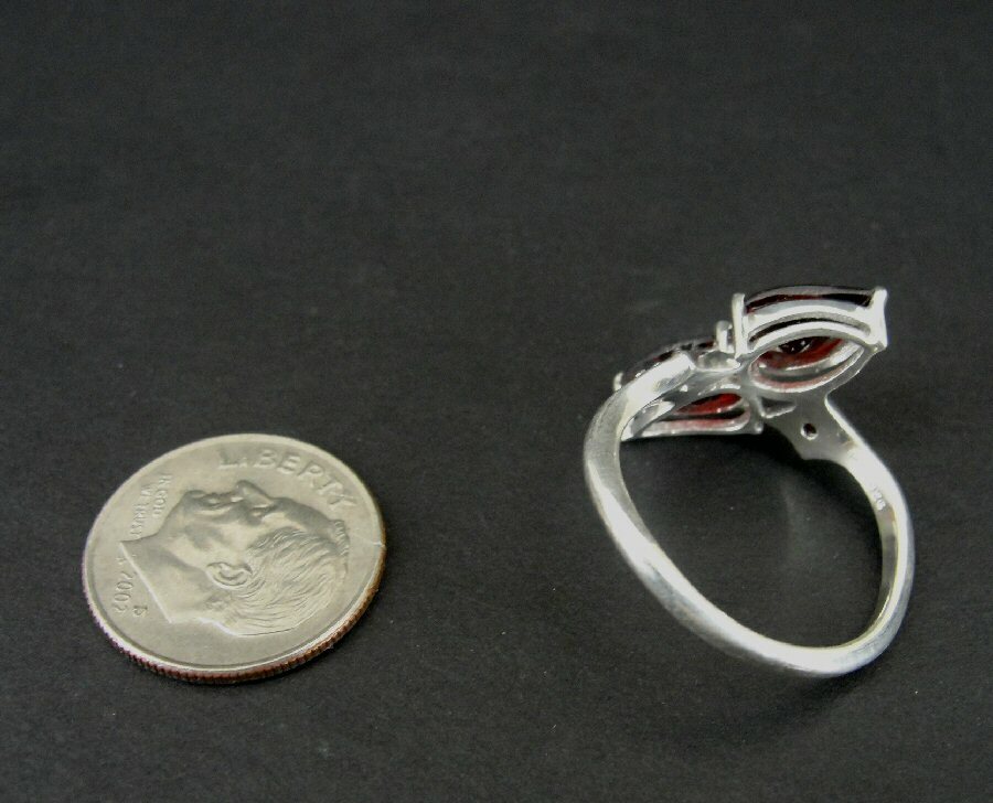 Ring Silver Teardrop Garnet Red Two Stones Sterling 925 Size 7 Ring Band