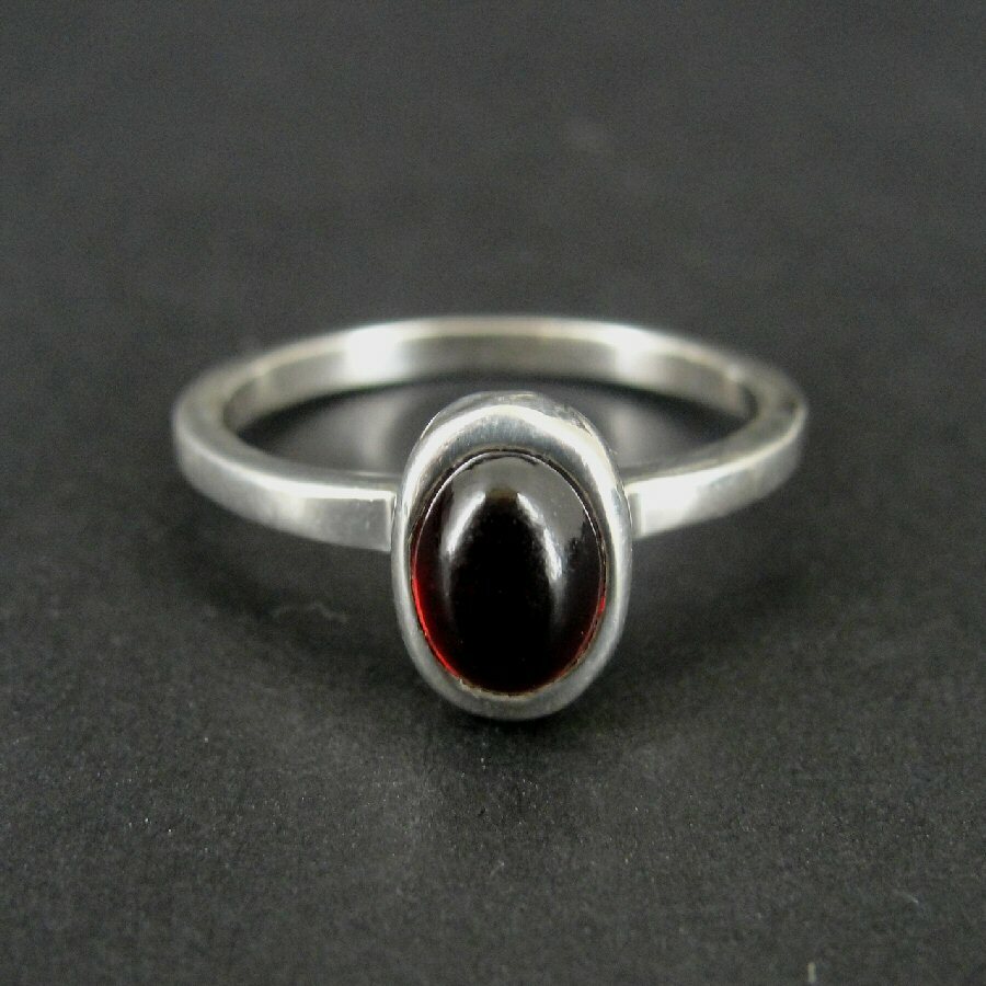 Ring Silver Garnet Red Oval Stone Sterling 925 Size 7.25 Band Ring 7 1/4