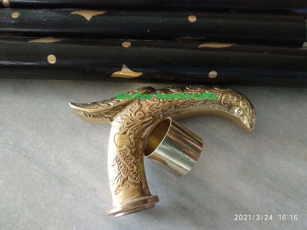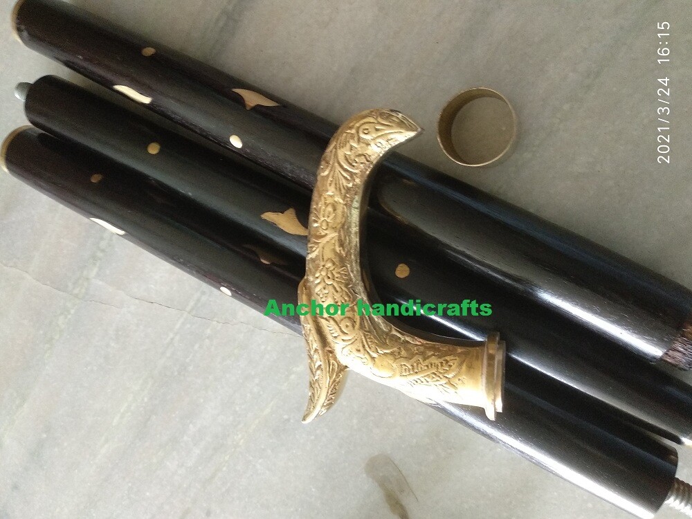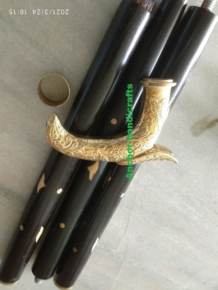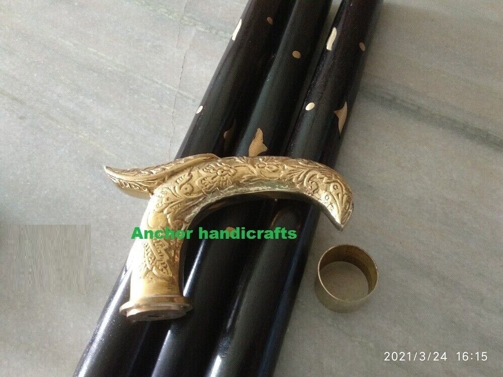 Brass Vintage Royal designer Walking Stick classic Brass inlay Black Wooden cane