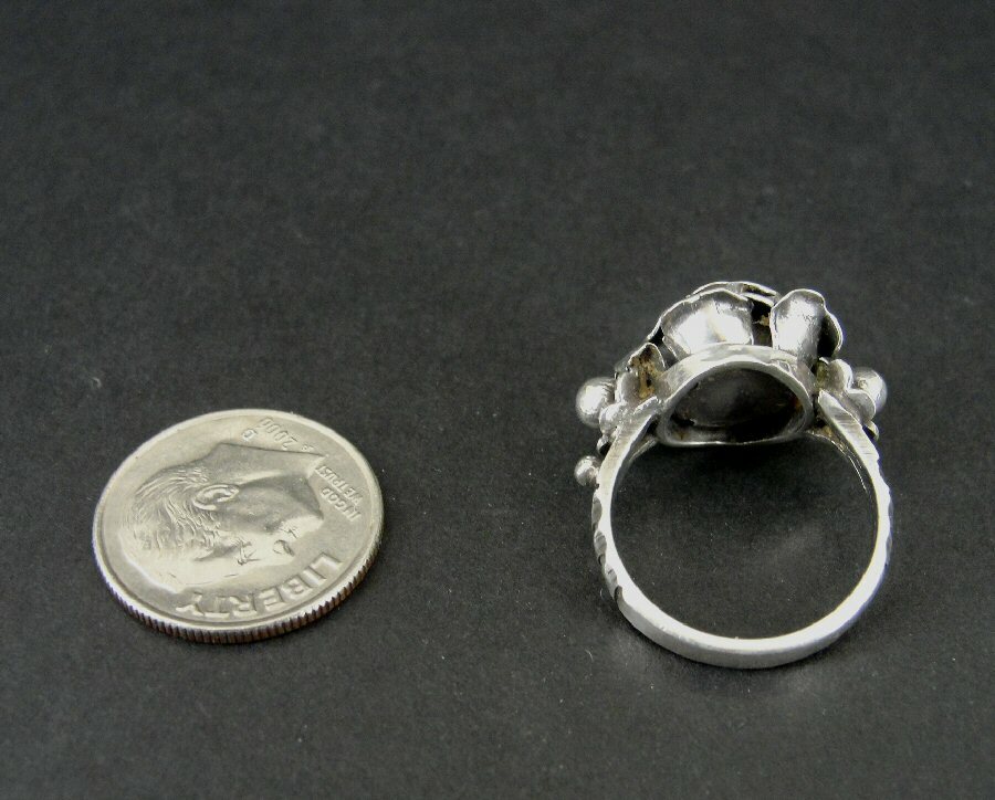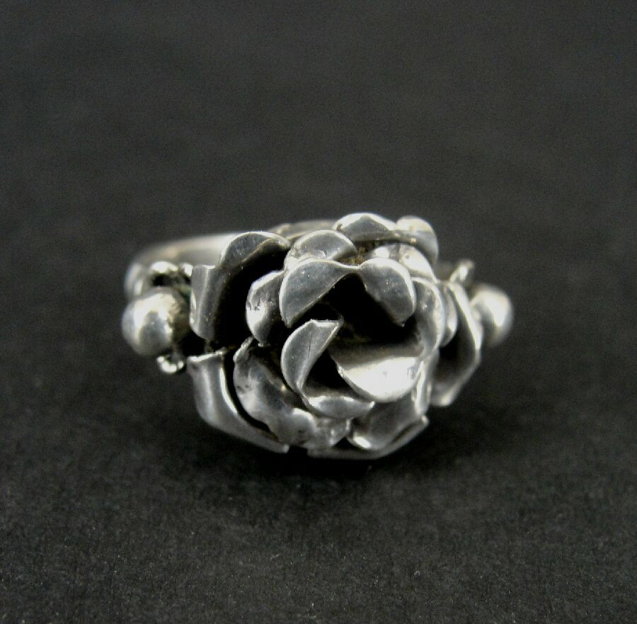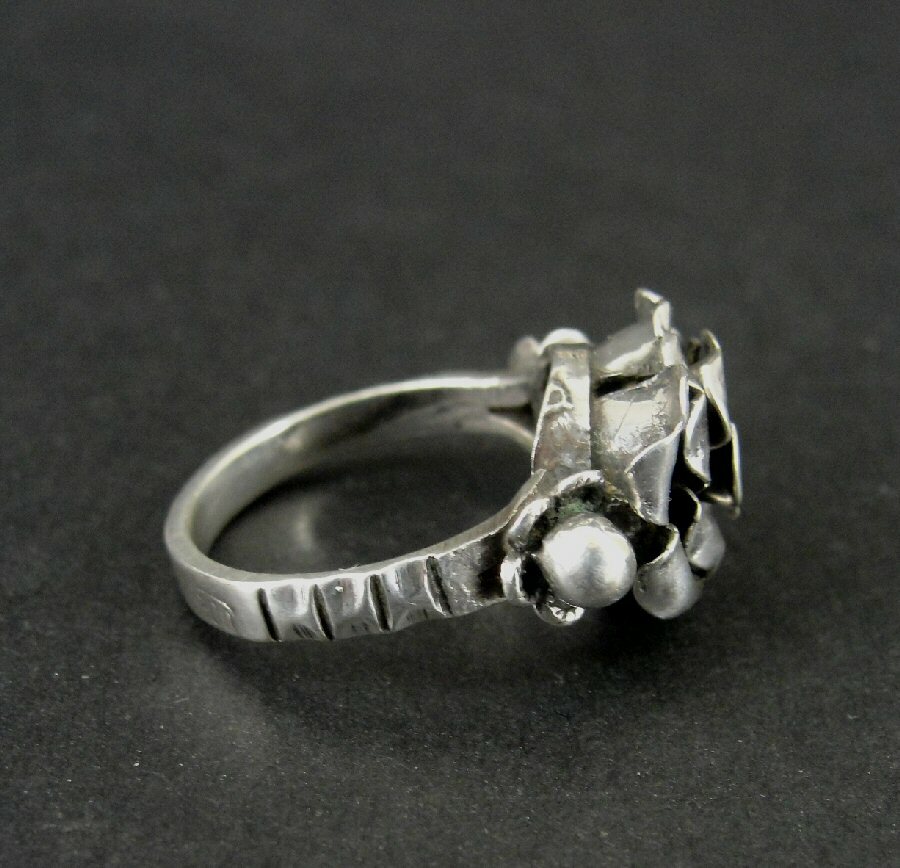 Ring Silver Rose Bloom with Side Flowers 800 Silver Size 4.5 Band Ring 4 1/2