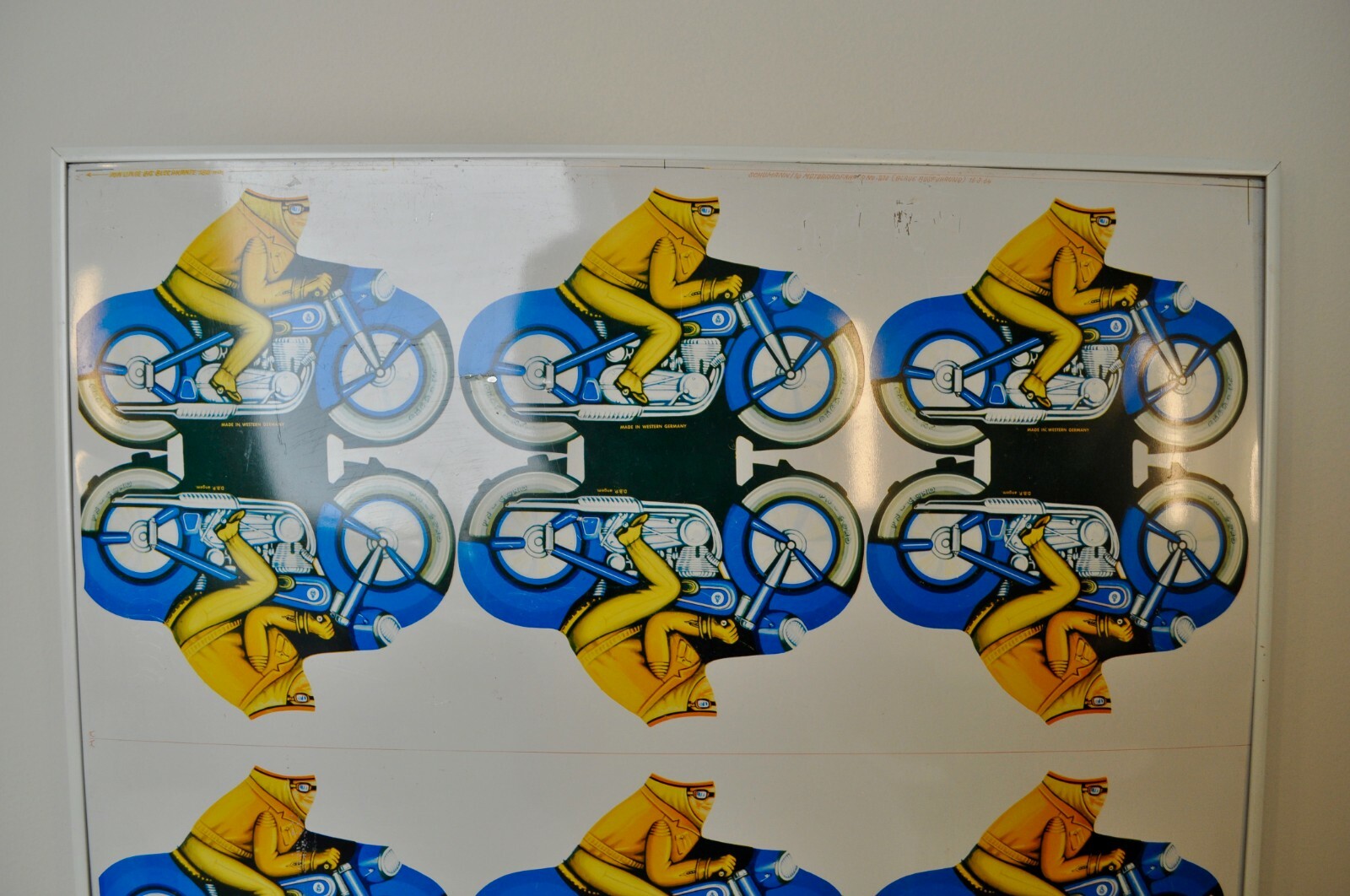 Vintage Niedermeier West German Tin Litho Toy Motorcycle Uncut Sheet 1964