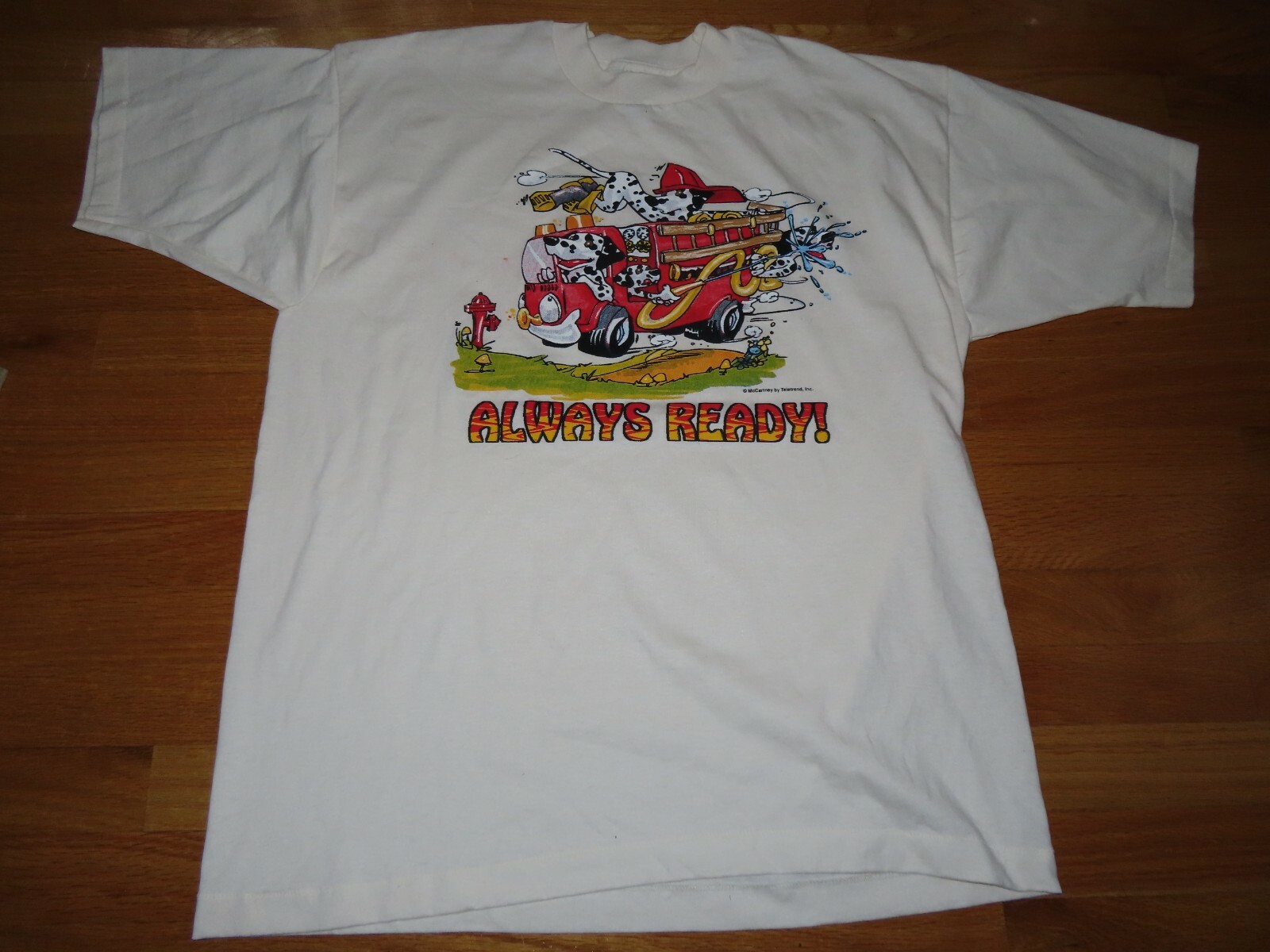• Vintage DALMATIONS "Always Ready" FIRE RESCUE FIRE ENGINE XL T-Shirt