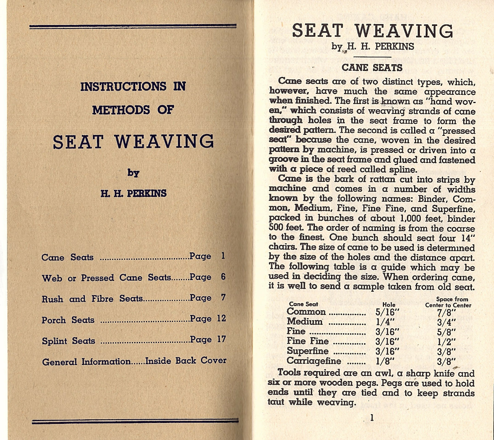 Instructions in Methods of Seat Weaving Vintage Booklet H H Perkins Company