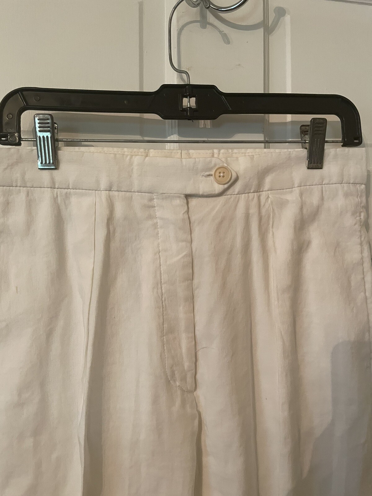Dries Van Noten ivory linen blend tab waist cropped pleated pants size 38