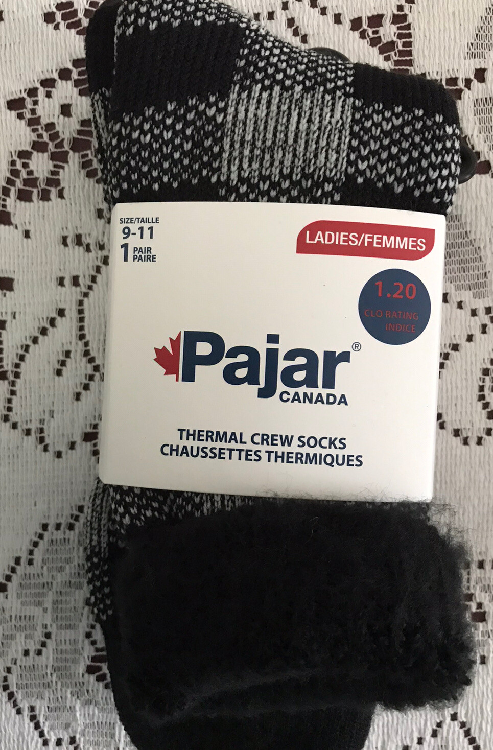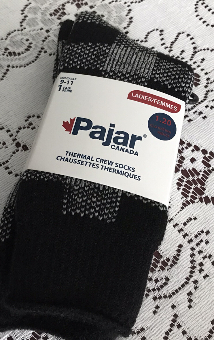 Women Pajar Canada Winter Thermal Crew Socks Size 9-11 - 1 Pair Black Check New