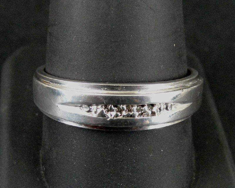 Ring Silver Band set in Design Cubic Zirconia Stones Sterling 925 Size 10.75