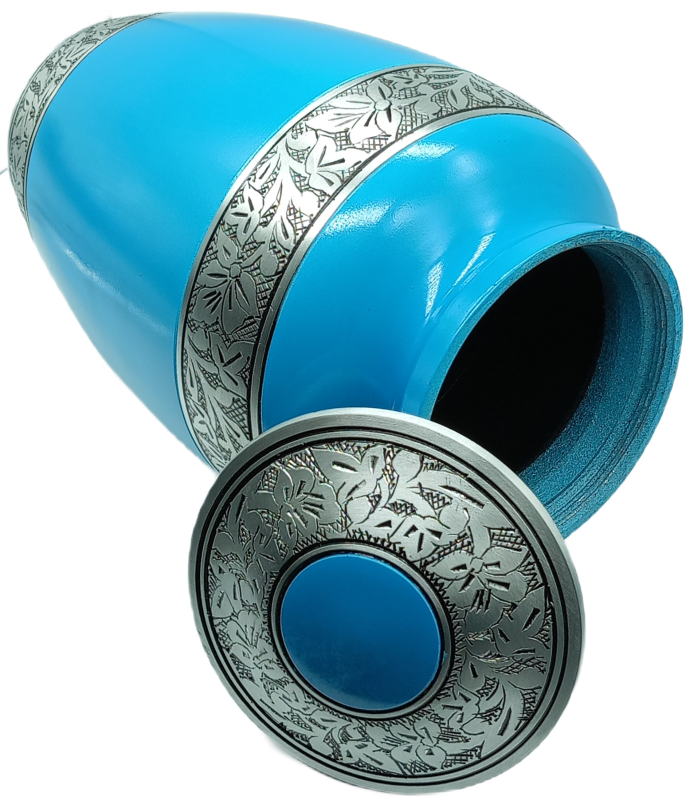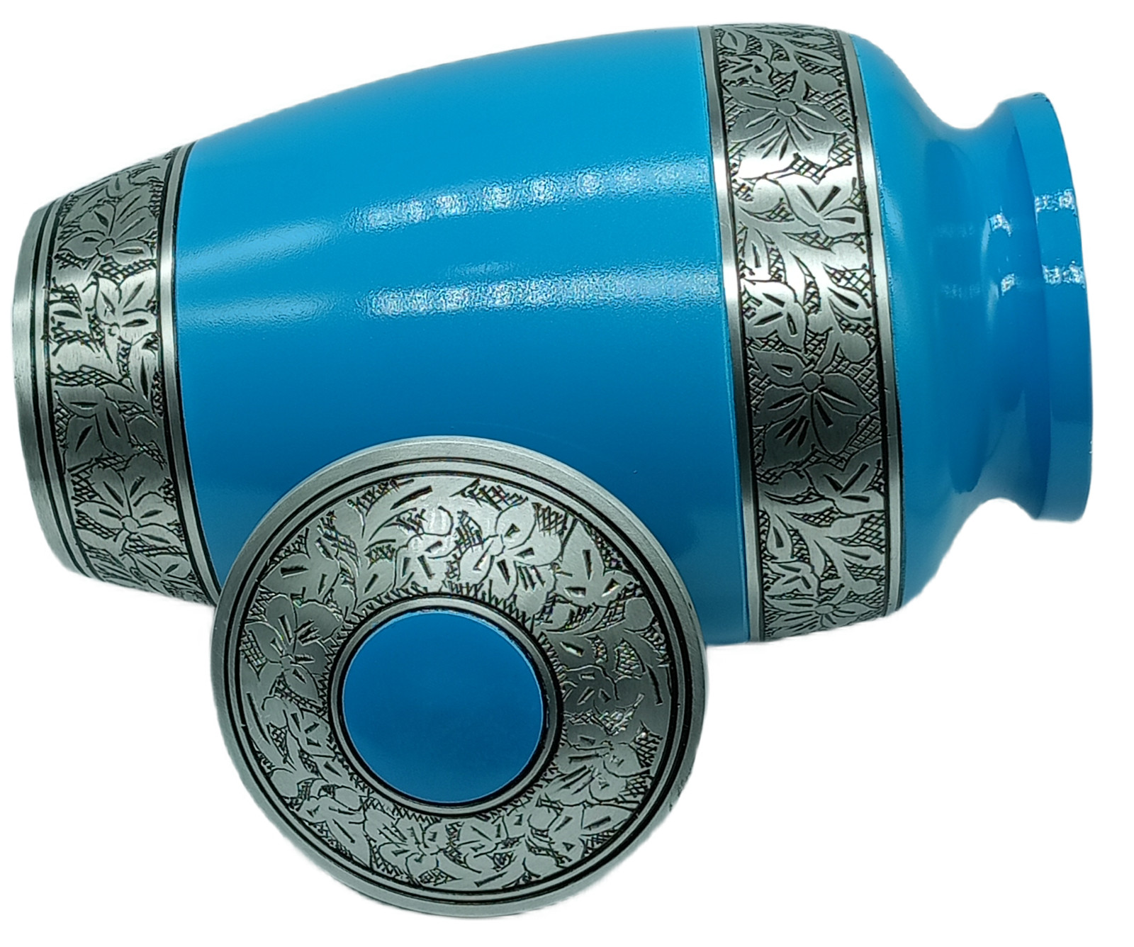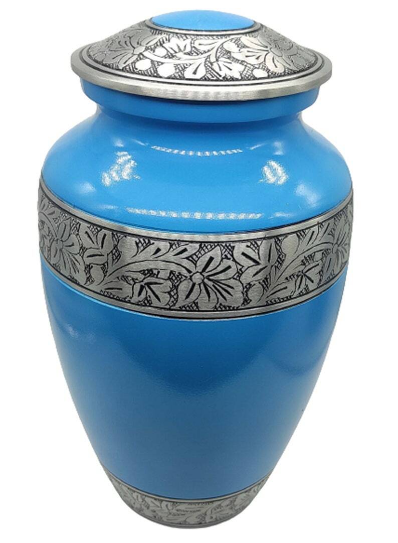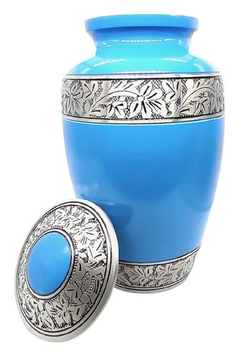 URN Funeral Cremation Aluminum Memorial Urns w/Velvet Bag Keepsake Urn In Blue