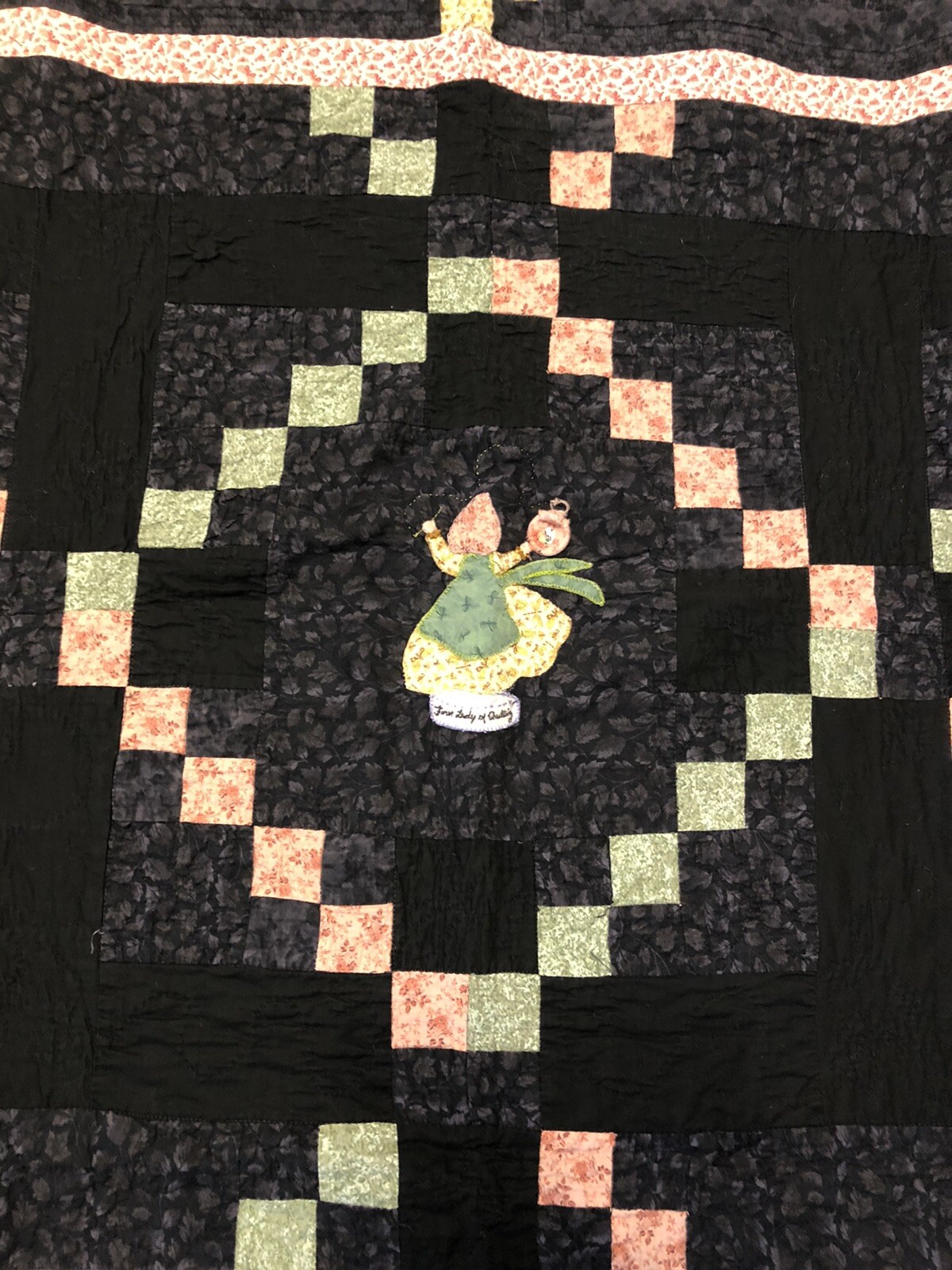как выглядит Beautiful Handmade Black Grey Floral Twin Cotton Quilt Reversible Throw 54x56 фото