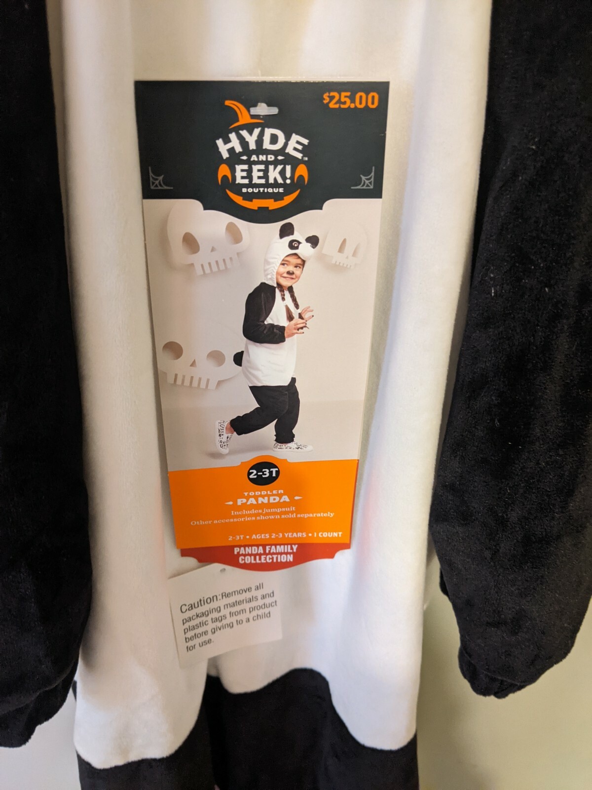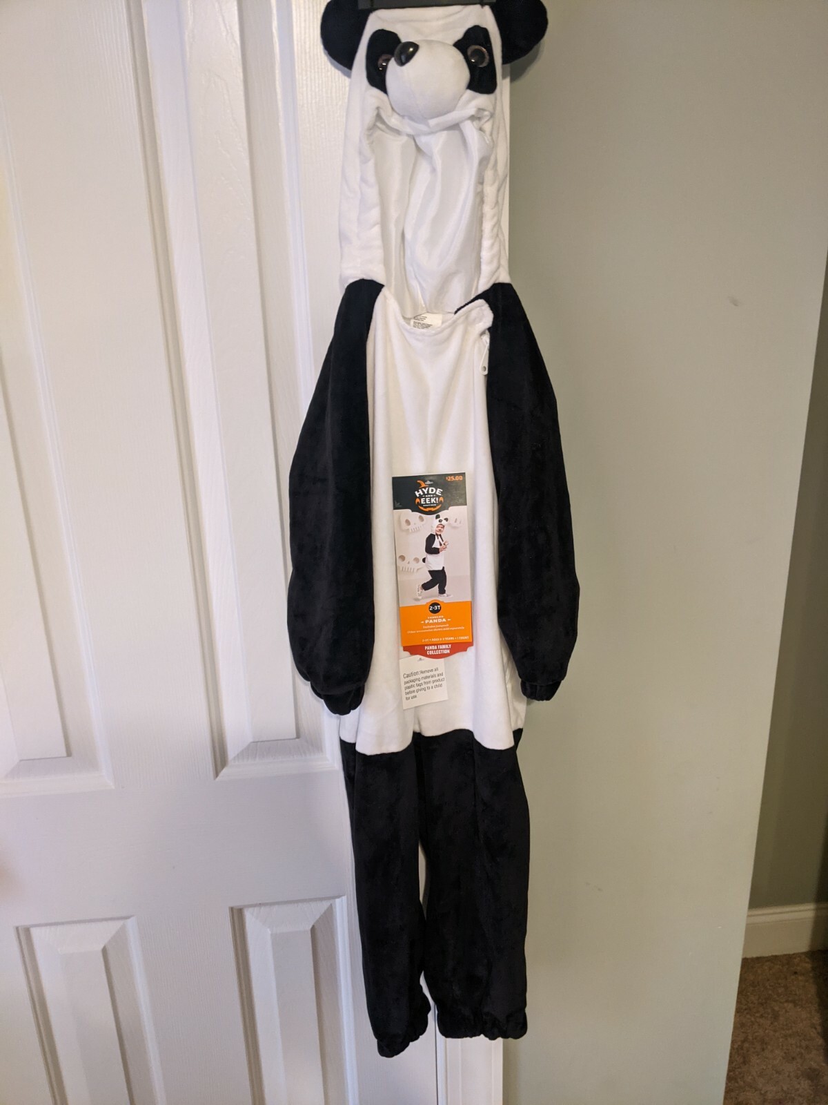 как выглядит HYDE EEK KIDS PLUSH PANDA BEAR JUMPSUIT COSTUME, BLACK/WHITE Size 2t- 3t фото